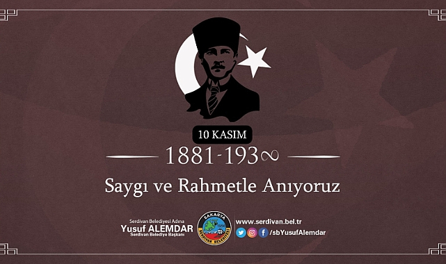 10 Kasım Gazi Mustafa Kemal Atatürk’ü Anma Günü ile ilgili olarak yayınladığı mesajda Başkan Alemdar; “Milletine duyduğu sonsuz güven ve inancıyla çıktığı zorlu yolda, milletimizi müşterek bir ideal etrafında birleştirmeyi başaran Gazi Mustafa Kemal Atatürk, İstiklal Mücadelemizi Cumhuriyetimizin kuruluşuyla taçlandırmıştır. O’nun 'en büyük eserim' dediği Cumhuriyetimizi ilelebet yaşatmak ve daha ileri taşımak için üzerimize düşen sorumlulukları hep birlikte yerine getirmeliyiz. Bu duygu ve düşüncelerle Cumhuriyetimizin kurucusu büyük devlet adamı Gazi Mustafa Kemal Atatürk’ü vefatının 84. yılında saygı, şükran ve rahmetle anıyorum.” dedi.