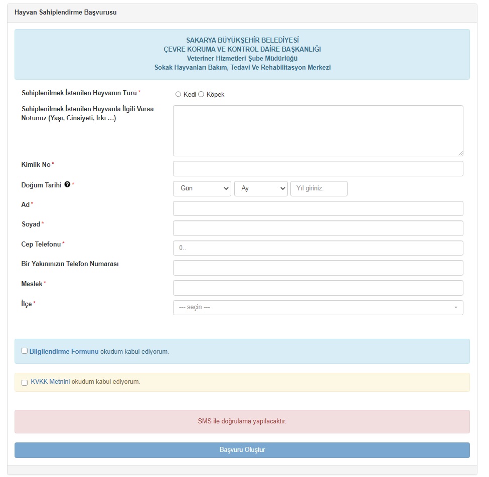 Sakarya Büyükşehir Belediyesi, sokak hayvanlarına yönelik gerçekleştirdiği çalışmaları her geçen gün genişleterek sürdürüyor. Sokak hayvanlarına yönelik gerçekleştirdiği çalışmalarla dikkatleri üzerine çeken Büyükşehir Belediyesi, Sokak Hayvanları Geçici Bakımevi, Tedavi ve Rehabilitasyon Merkezi’nde bulunan hayvanları sahiplenmek isteyen vatandaşlar için online başvuru hizmetini uygulamaya aldı.