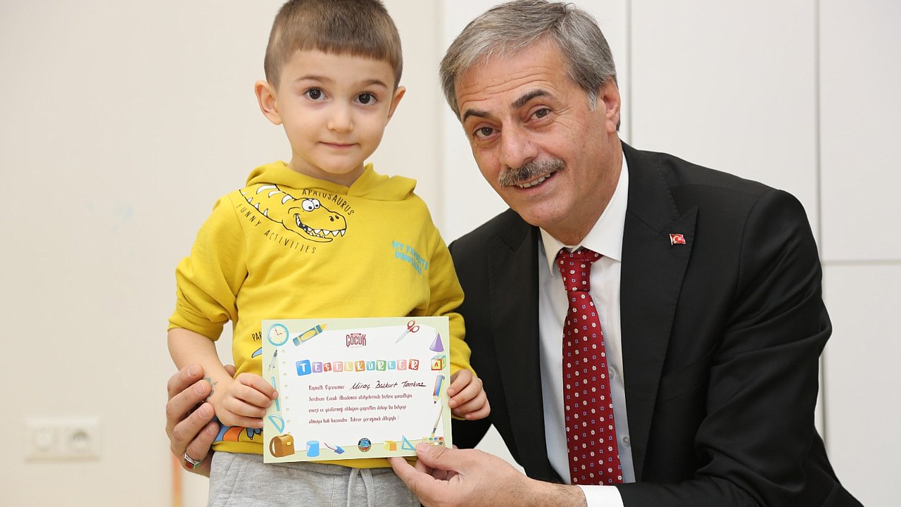 3-4 Yaş grubu öğrencilerin ilk karnelerine ve heyecanlarına ortak olmak amacıyla ebeveynler ile birlikte düzenlenen atölye çalışmasında Serdivan Belediye Başkanı Yusuf Alemdar da katıldı.